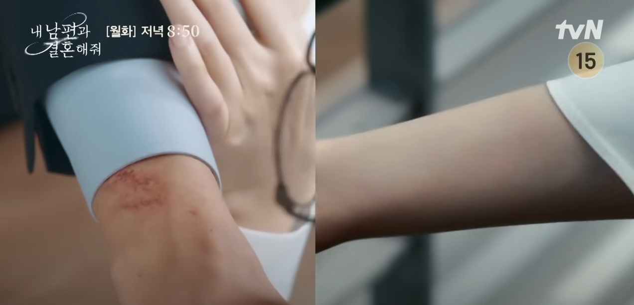 자신이 과거에 뜨거운 커피포트에 화상을 입어 흉터를 가지게 되었었는데 자신이 갖었던 흉터 모양과 위치까지 똑같이 지혁부장에게 흉터가 생긴것이다.
