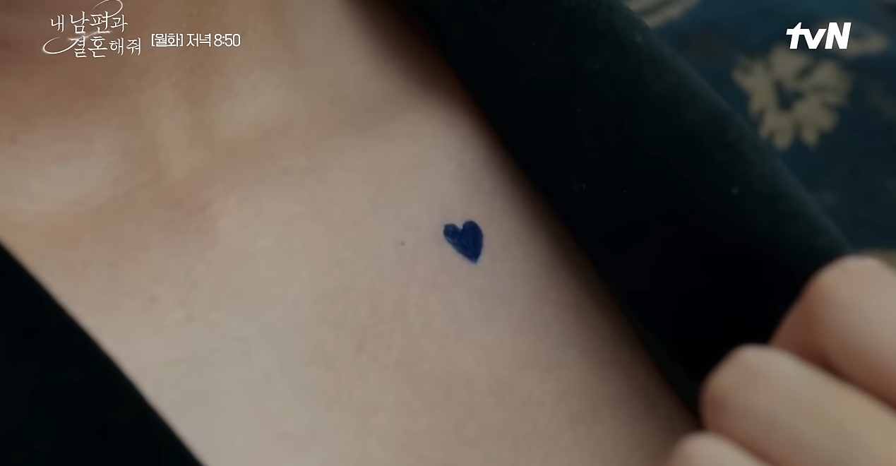 그러면서 지원의 아버지 용돈마크와 똑같은 모양과 색상의 하트그림이 민환의 가슴에 새겨있다.