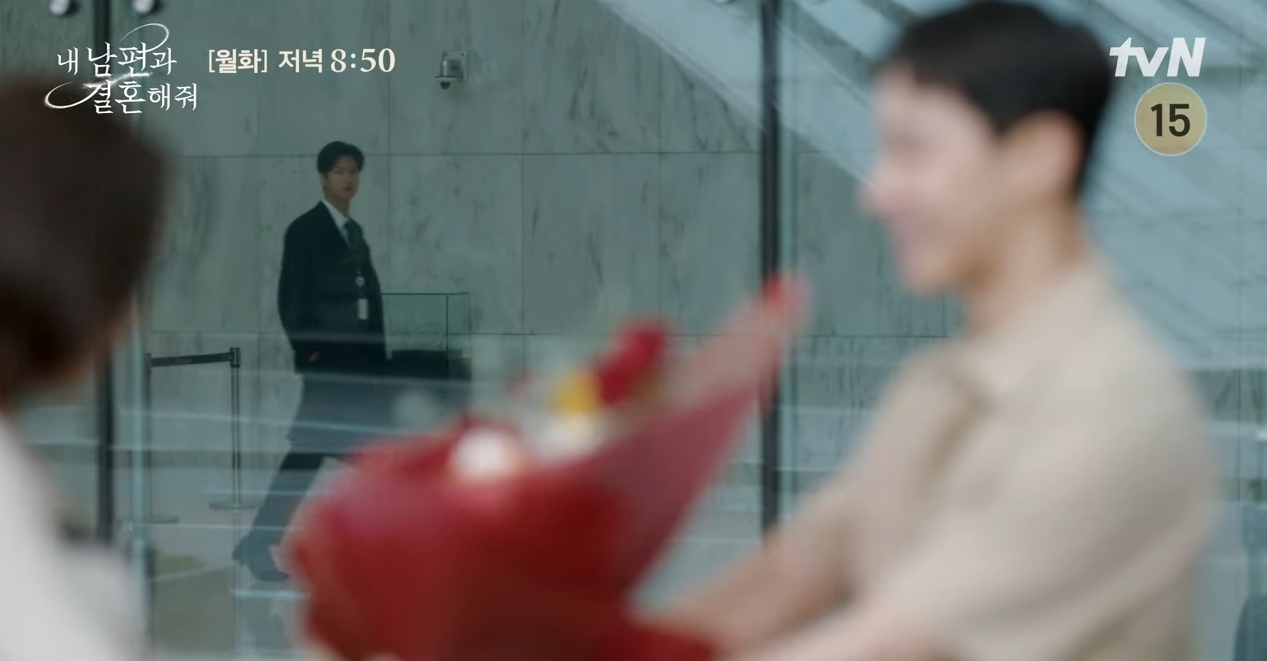 회사 앞에 큰 꽃다발을 들고 찾아온 은호, 그 두사람을 바라보는 지혁