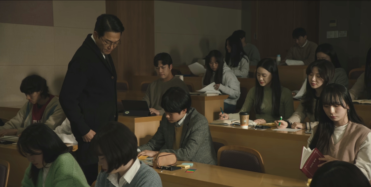 청강하러온 윤성이는 권석주와 학생들이 웃고 잘지내는 모습을 좋게 보지 않는거 같습니다.