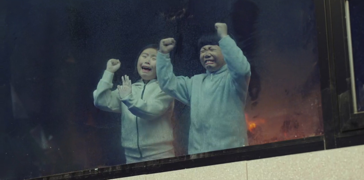여러차례 아이들을 불 속에서 꺼내준다.