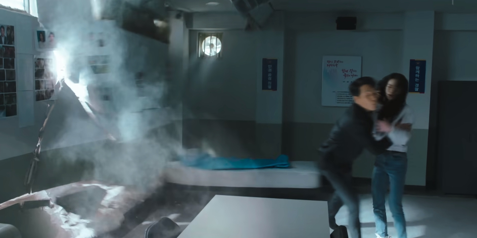 트럭이 건물을 뚫으면서 탈출하게 되었다.
