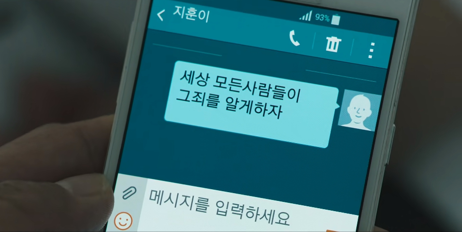 권석주는 '세상 모든사람들이 그 죄를 알게하자'라는 메세지를 지훈이에게 보냅니다.