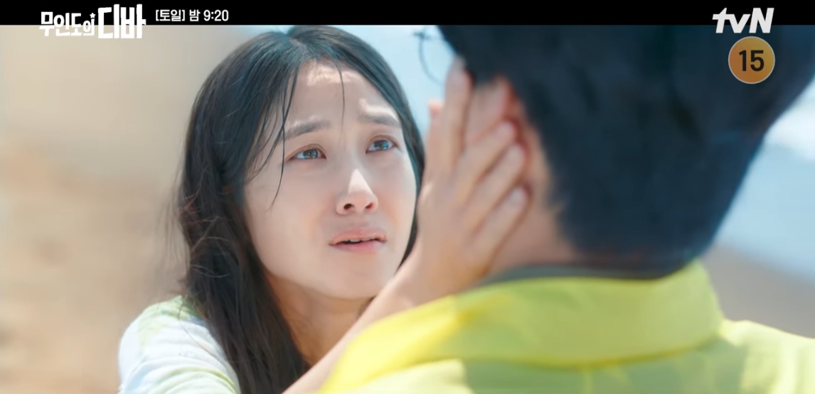 15년만에 무인도에서 처음 사람을 본 목하는 너무 사람이 반가워서 부둥켜 안는다.