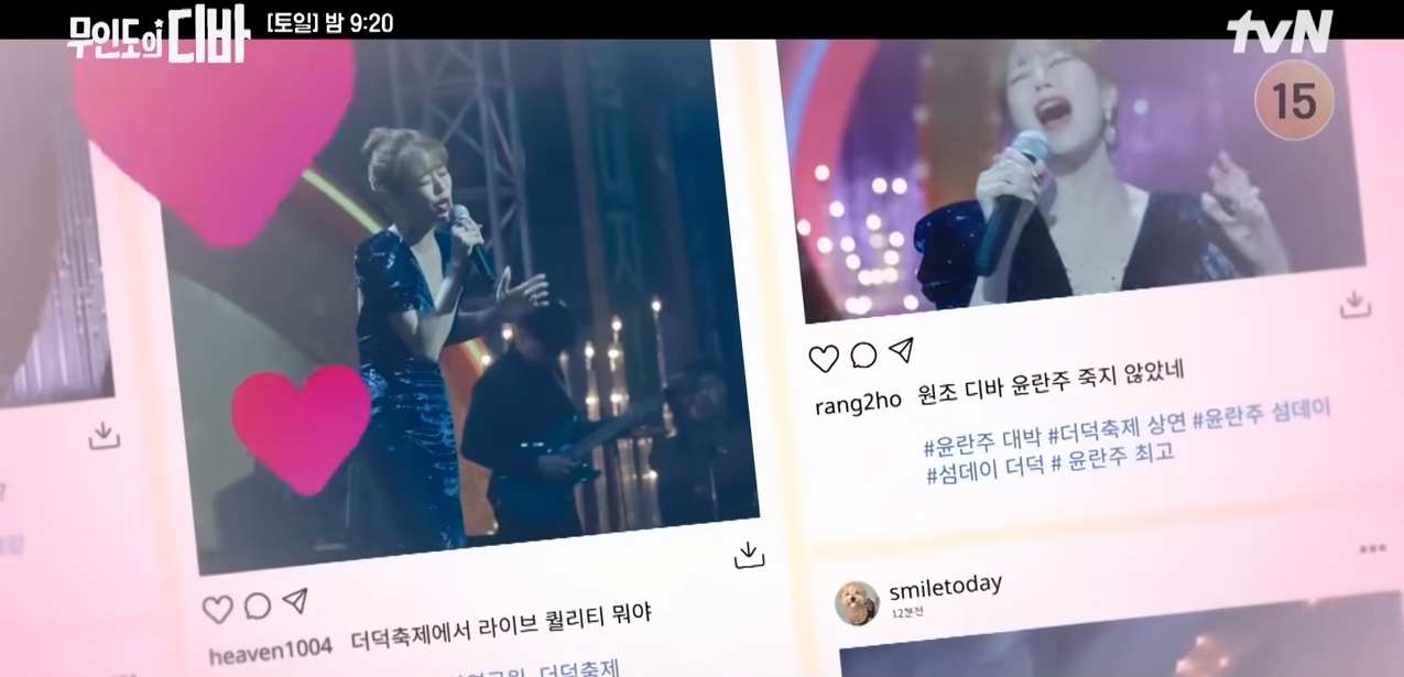 란주는 전성기때보다 더 훌륭한 목소리를 내어주며 목하의 노래로 립싱크하며 무대에 올랐다.