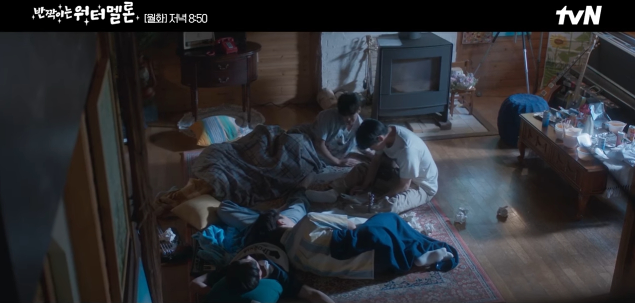 두 사람은 이찬을 바라보며 반짝이는 워터멜론 14회가 끝난다.
