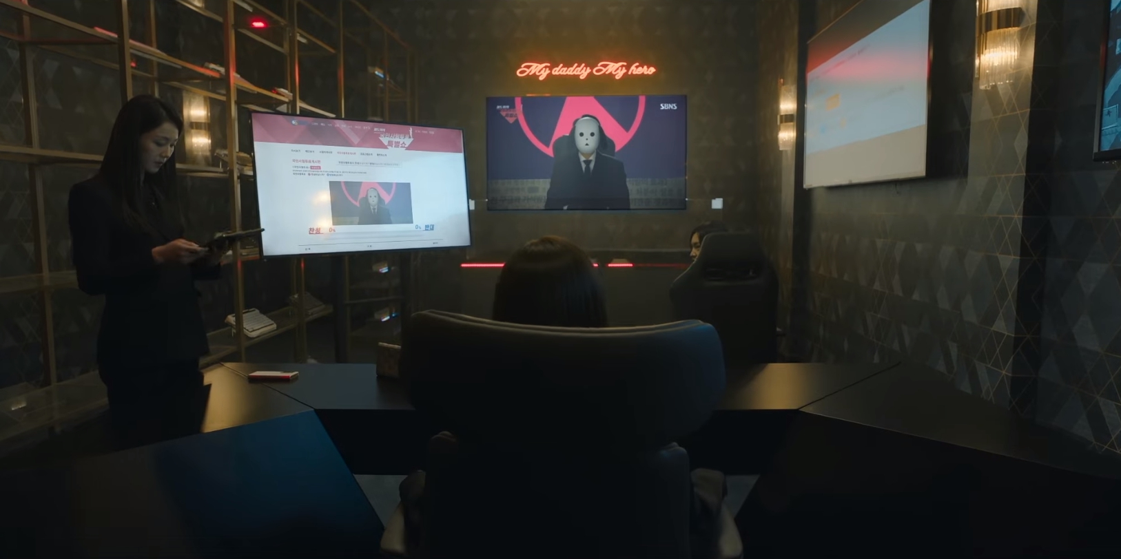 주민과 함께 길거리를 돌아다니며 방송을 하며 민지영이 수배금으로 최대2억을 올려 쫒겨다니면서 국민들에게 호소를 하고 있다. 자신의 아버지를 반대투표를 해달라고 말이다.