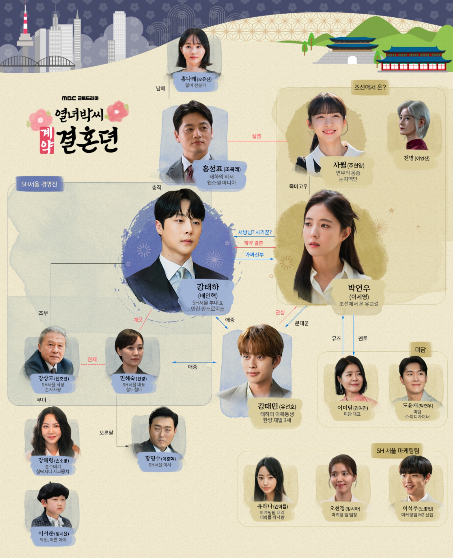 방송예정 금토(밤) 9시50분 - 19세기 발칙한 유교걸 박연우와 21세기 무감정끝판왕 강태하의 금쪽같은 계약결혼 스토리.